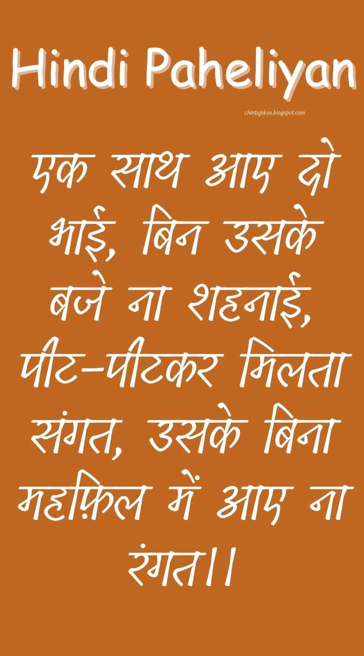 पहेली: एक साथ आए दो भाई, बिन उसके बजे ना शहनाई, पीट-पीटकर मिलता संगत, उसके बिना महफ़िल में आए ना रंगत।।
